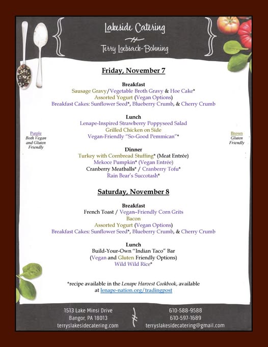 All meals, snacks and workshop materials are included. The food selections are influenced by Lenape culture, and include vegetarian, vegan, and gluten-free options.